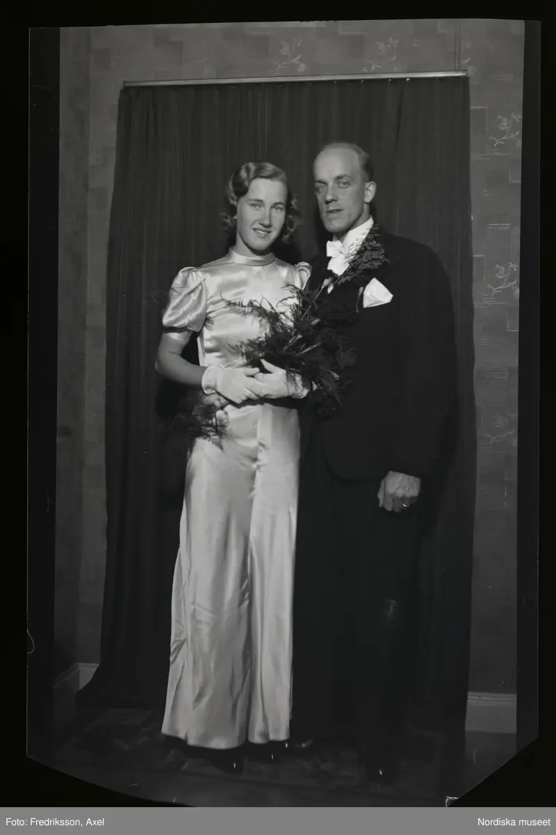 Titel: "Aina och Erik Karlsson, Julita kvarn. Mjölnare." Porträtt av ett brudpar.