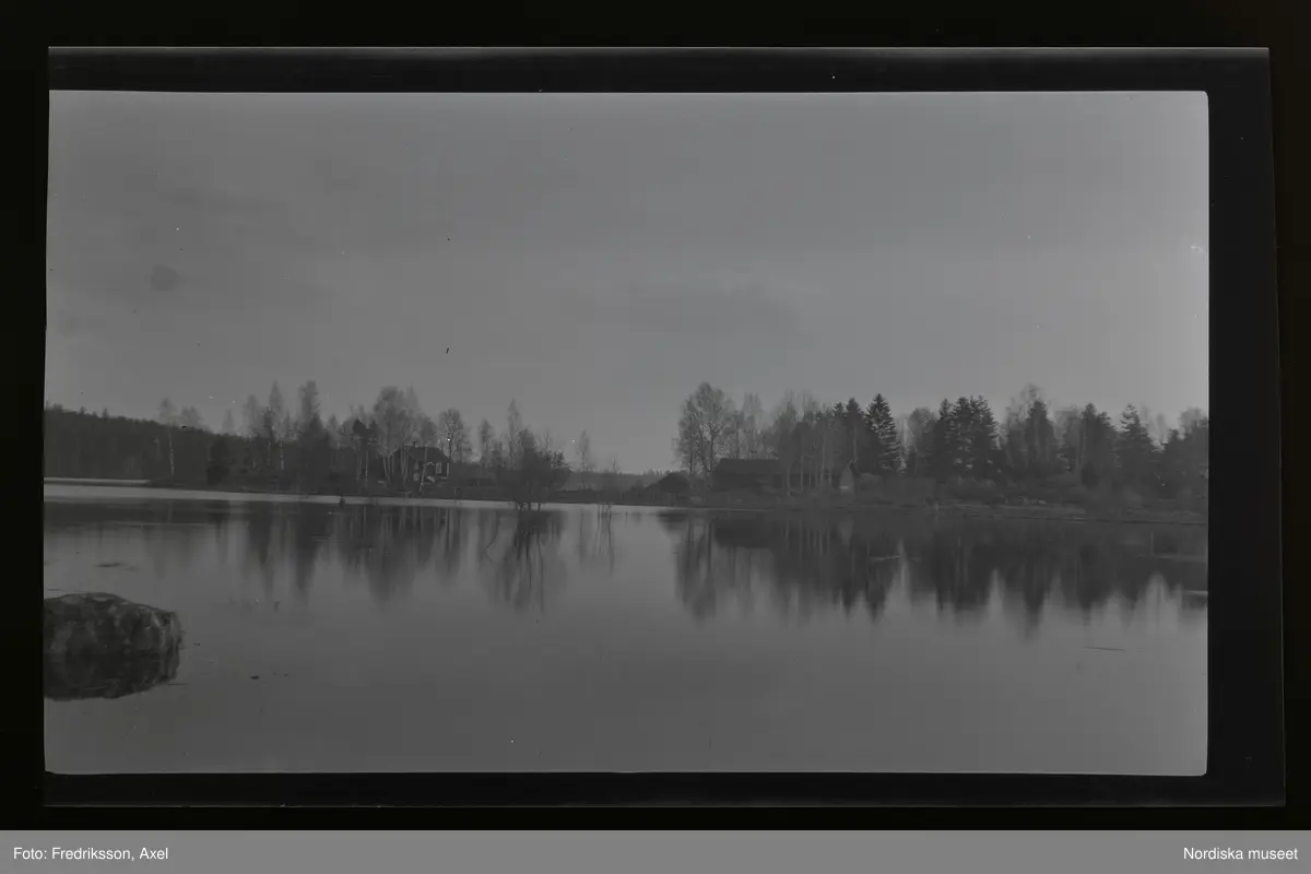 "Dammstugan (med översvämning) Axel Fredriksson född här 1893."