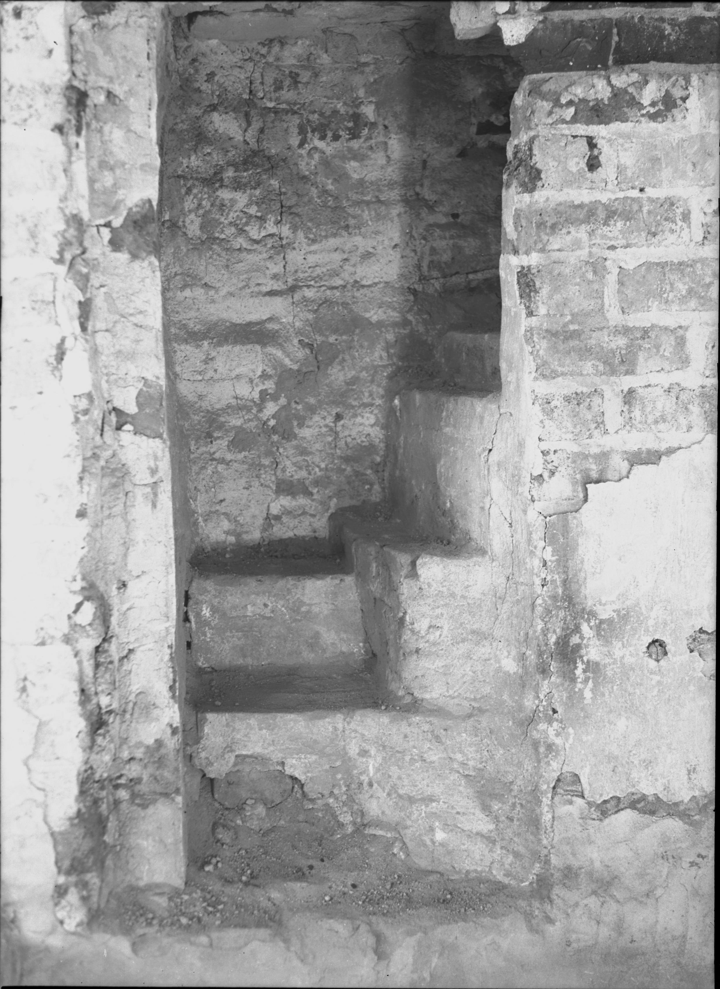 Ingången och trappan från pelarens östra sida. Till vänster spåren av bärskoningen.