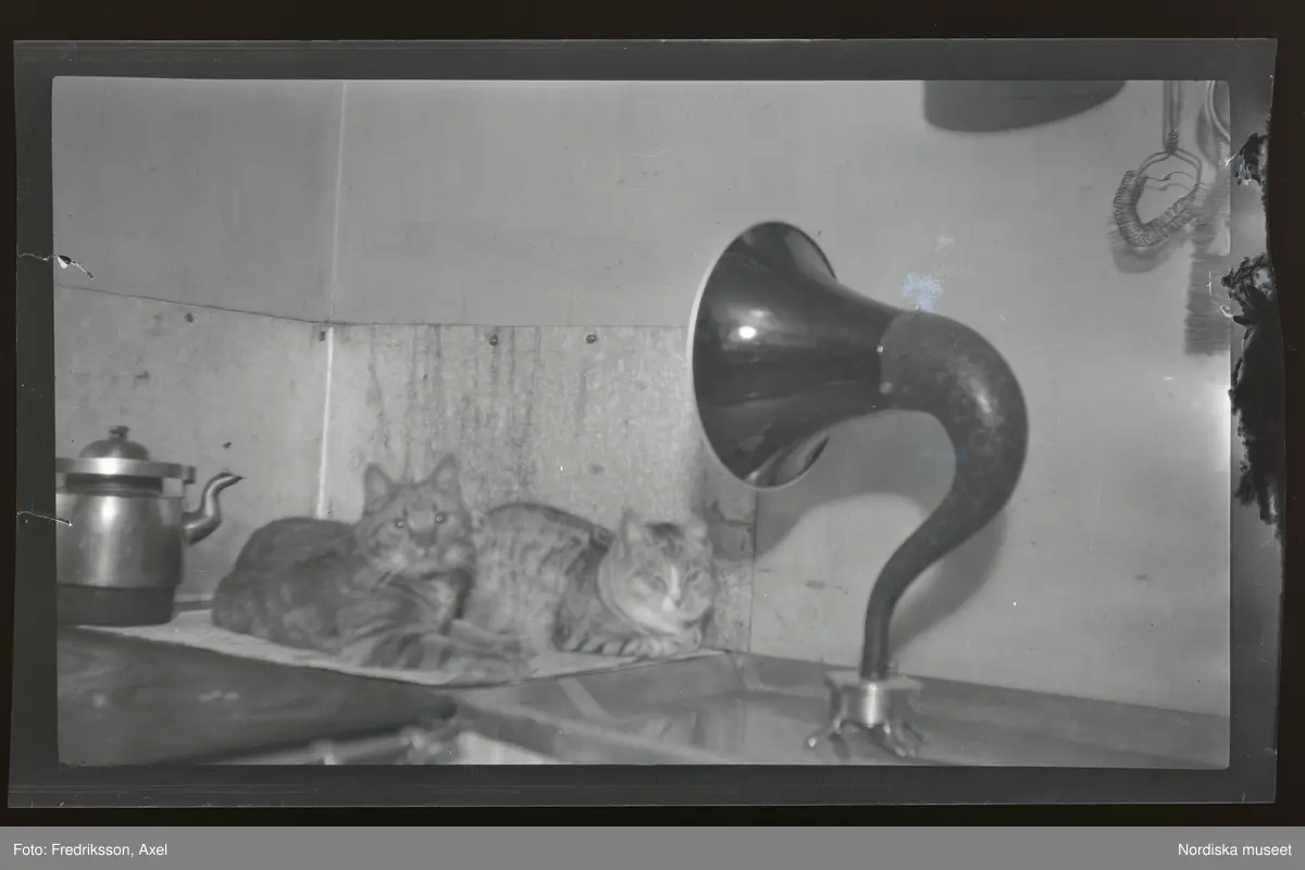 "Högtalare från radioapparat, Lasse och Maja lyssnar noga"
