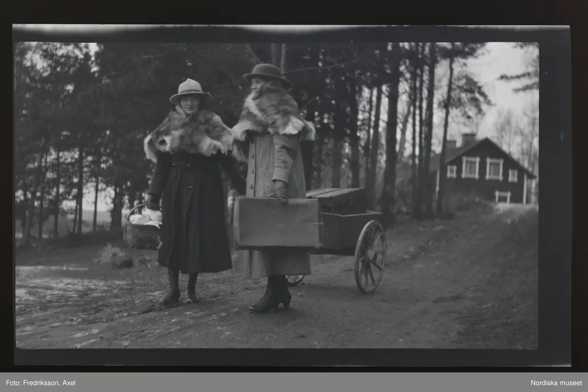 "Annie och Elsa leker att de flyttar från gårdshushållet, Fogelstad"