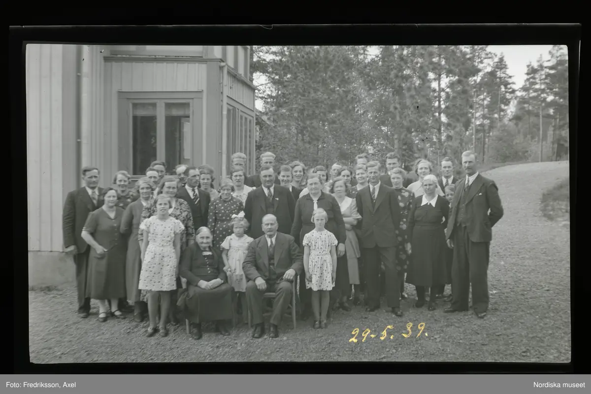 Grupporträtt av släkt och vänner vidfödelsedagsfirandet av Fredrik Vilhelm Eriksson.