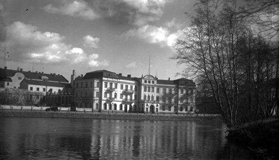 Foto taget från Sanbäcksgatan. Vy med Klarälven och Statshotellet.