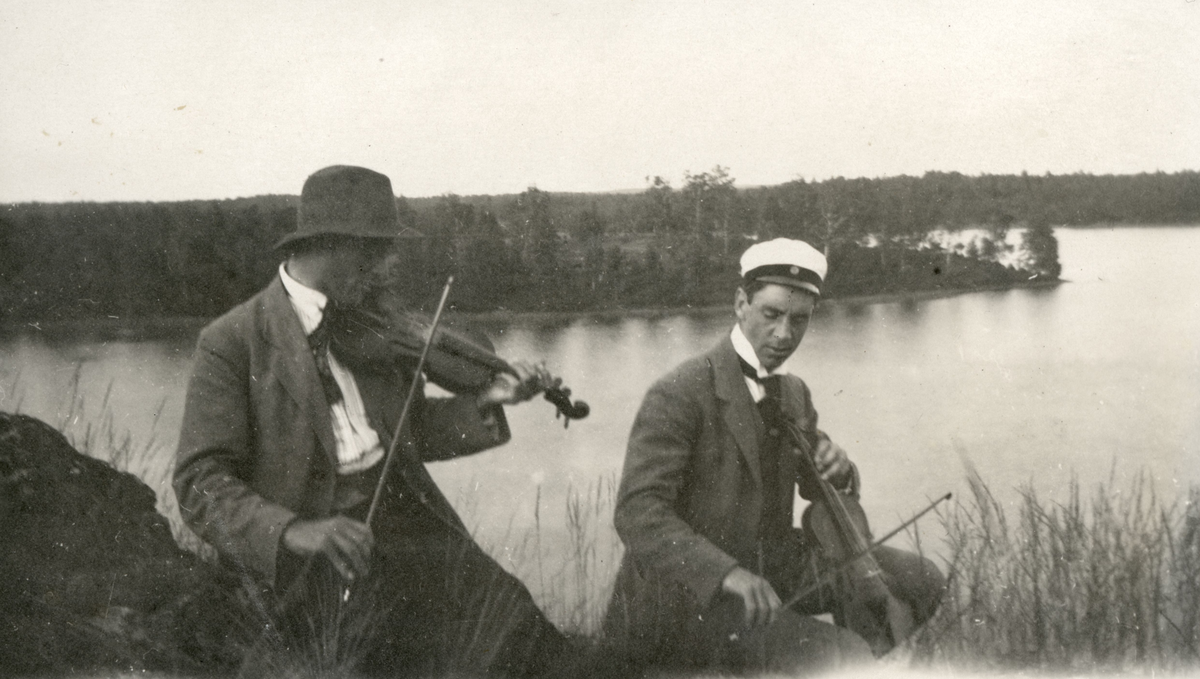 Man med fiol och Oscar på cello