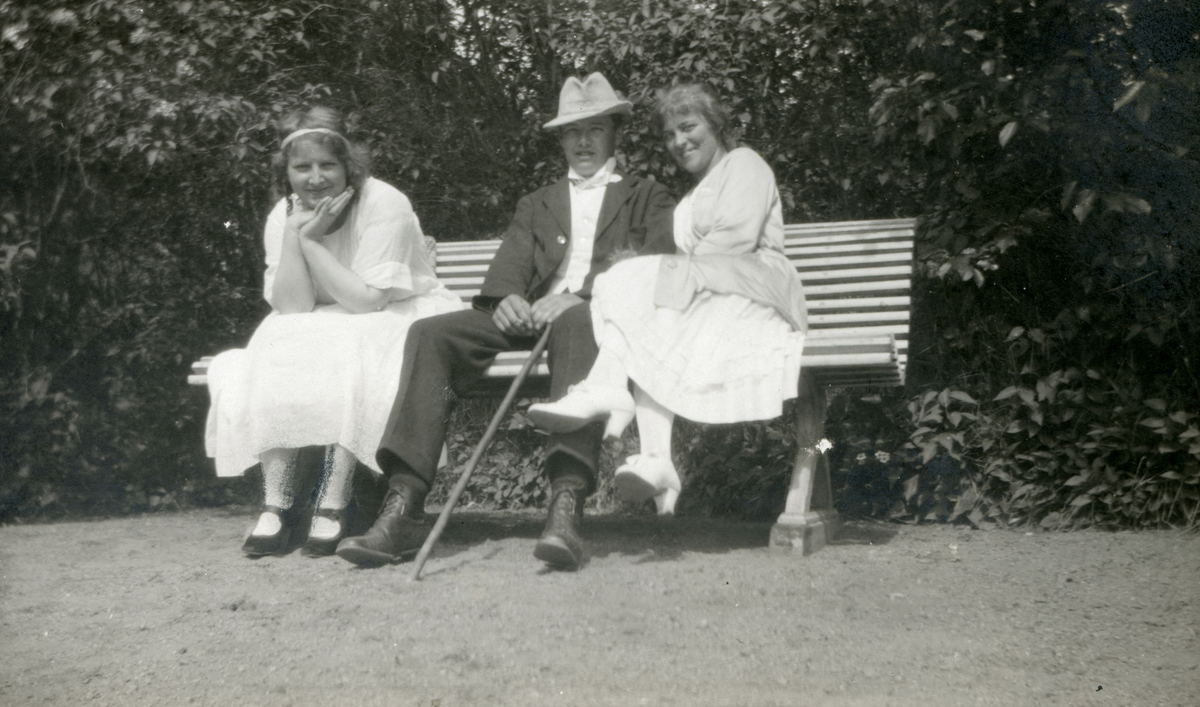 Anne-Beate, Sören och Maja Goding på parkbänk