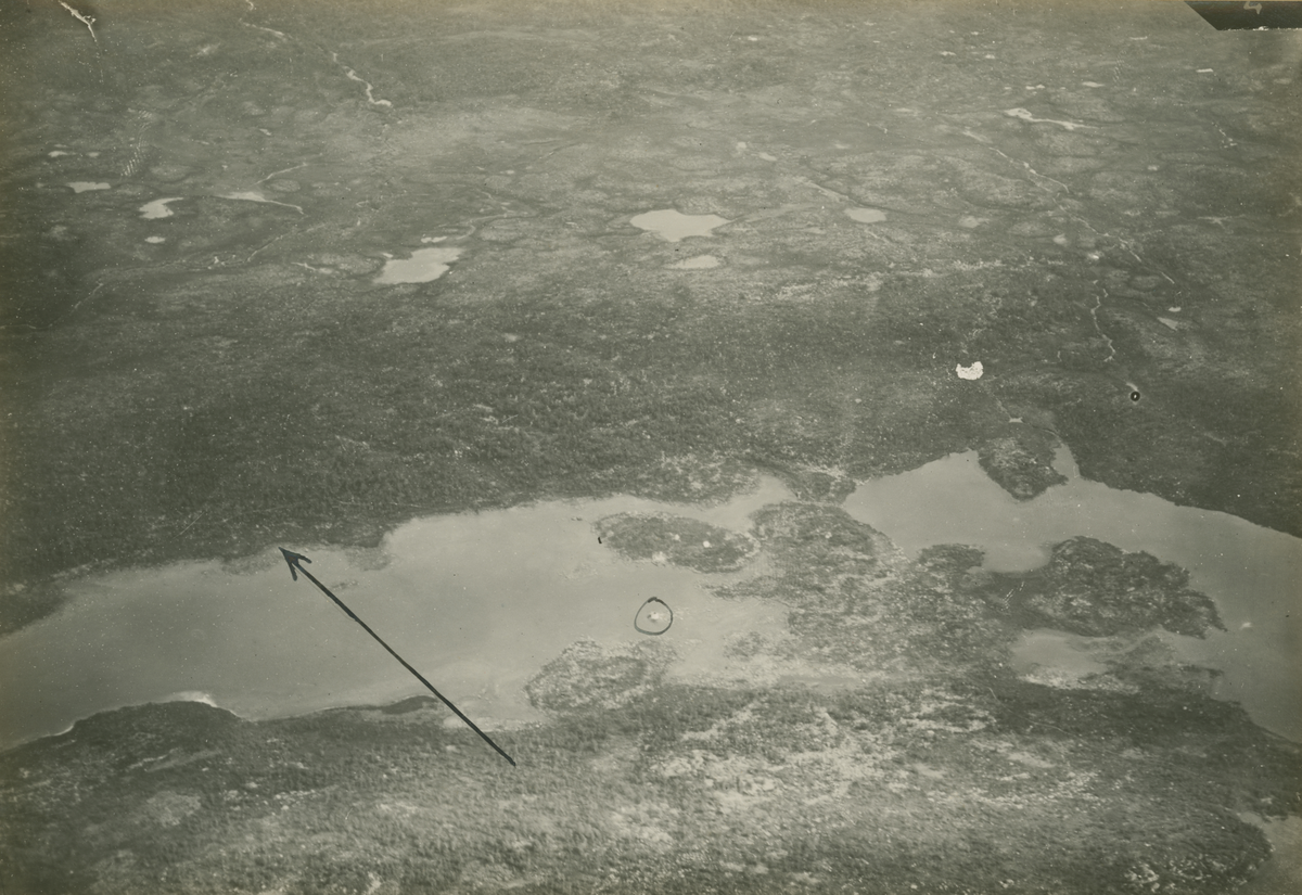Titel: Flygbild av trakten kring Treriksröset, 20 juli 1926. Tillhörande bildrapport från Gränsspanaravdelningen till chefen för flygspanarskolan.
