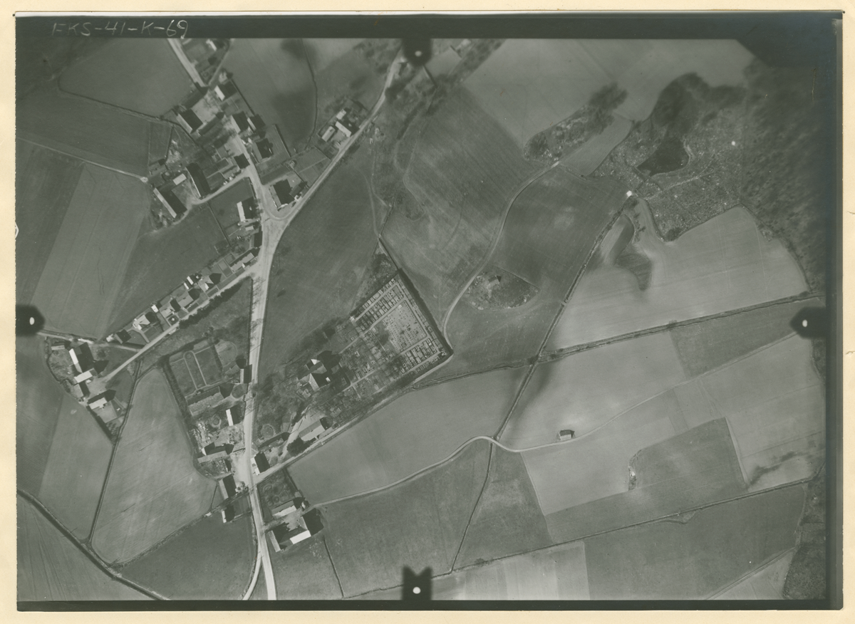 Flygbild av Norra Rörum kyrka tagen den 19 maj 1941.