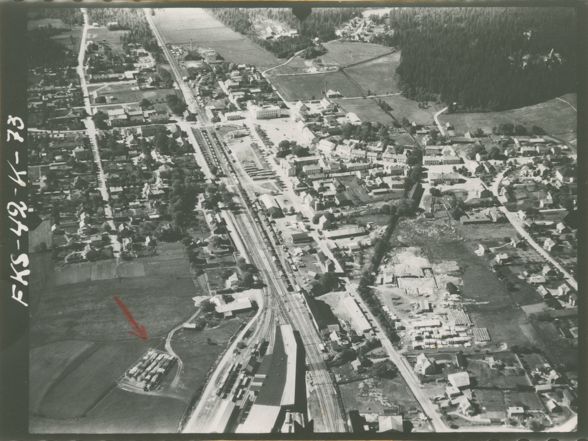 Flygbild av Sävsjö järnvägsstation tagen den 30 juni 1942.