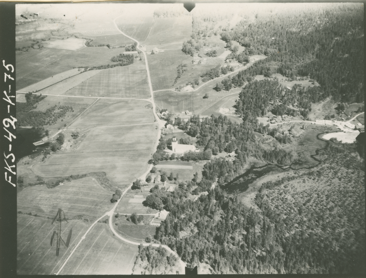Flygbild av Asa kyrka tagen den 30 juni 1942.