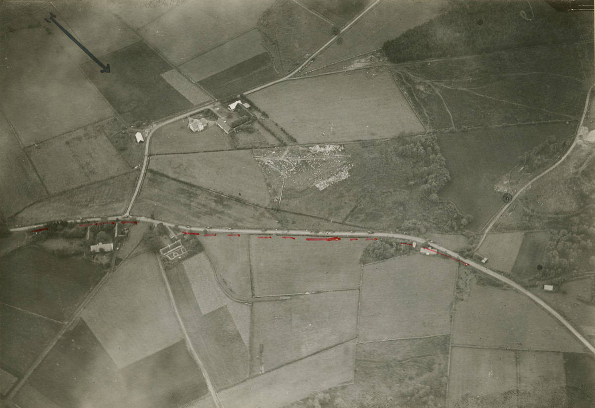 Tillhörande bildrapport, övningsbild flygspaning, med markeringar inritade.