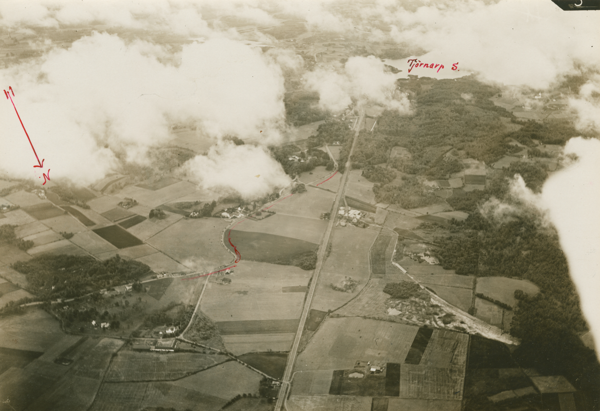 Flygbild av truppförflyttning vid Gunnarp, Skåne, 29 september 1931.