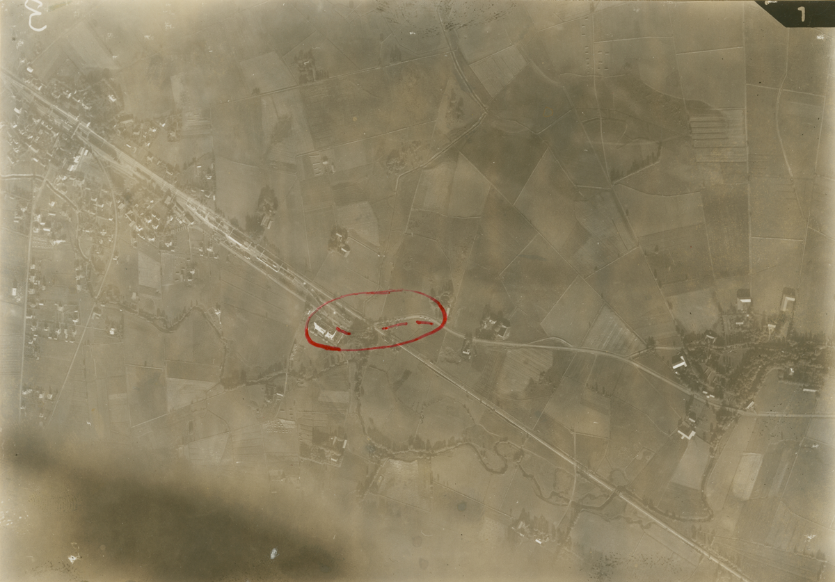 Tillhörande bildrapport, övningsbild flygspaning, med markeringar inritade.