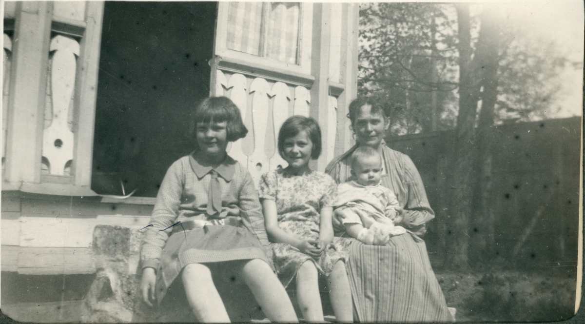 Gruppbild. "Ann Marie, Kerstin, Nanny m Karl Fredrik Nyström"