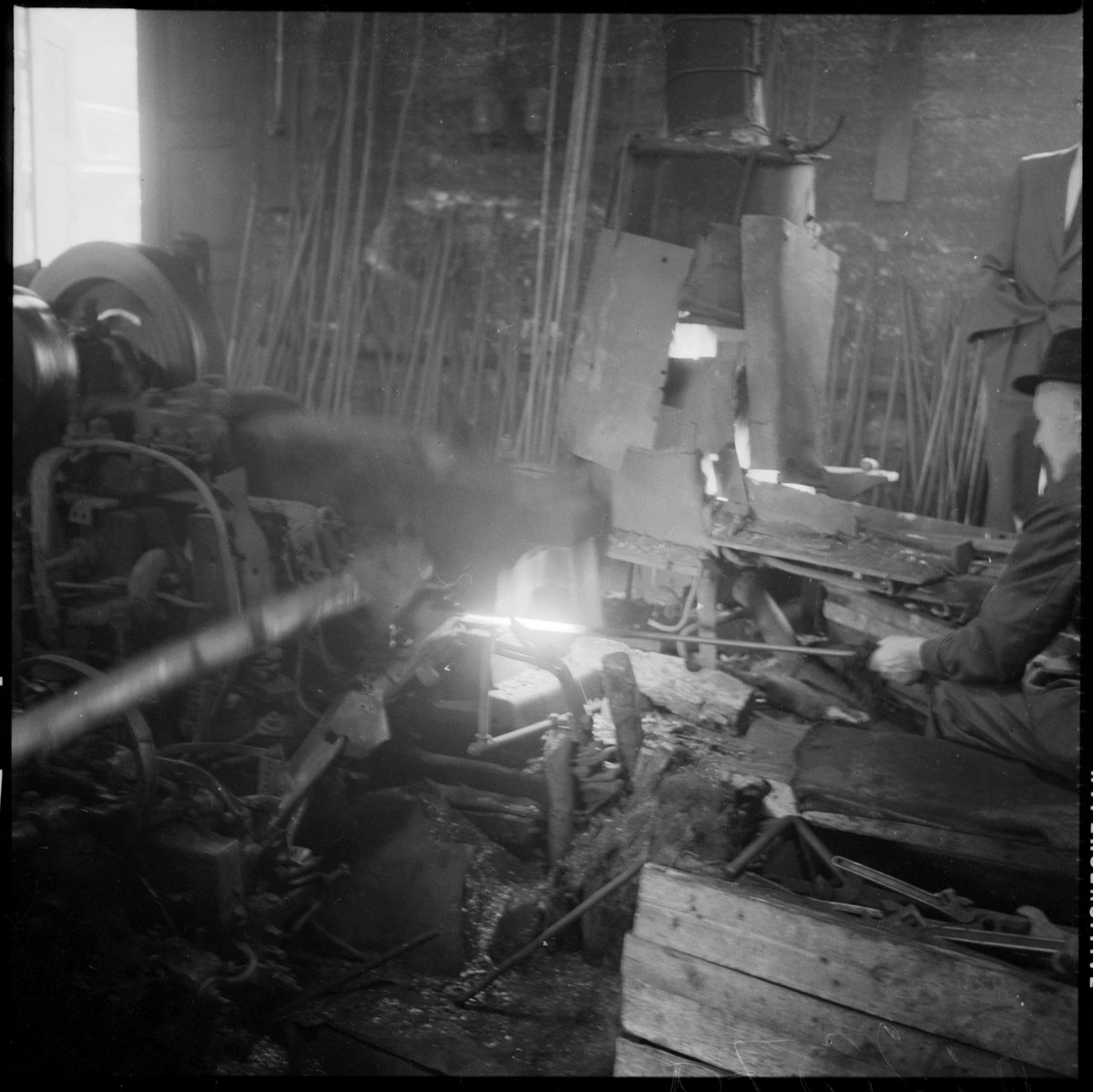 Bäckefors bruk. Disponent Bjurström smider spik i gamla bruket.