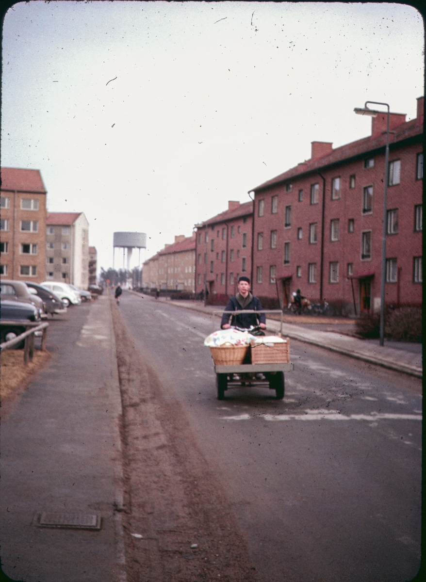 Vänersborg, Bangatan. Tvättinrättningen på Reuterskiöldska området, flakmopedbud