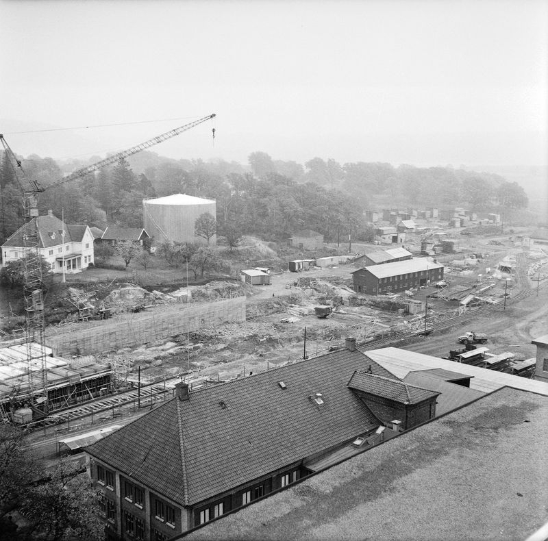 Wargöns AB. Byggnation av PM 5 1959-60. Foto och påförd text av dåvarande ritkontorschefen Ragnar Söderberg.