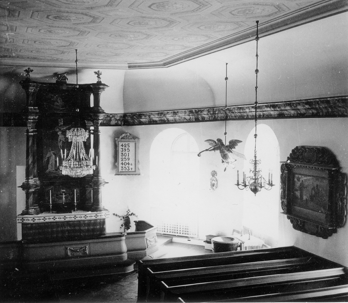 Norra Björke. Kyrka. Kor och del av taket