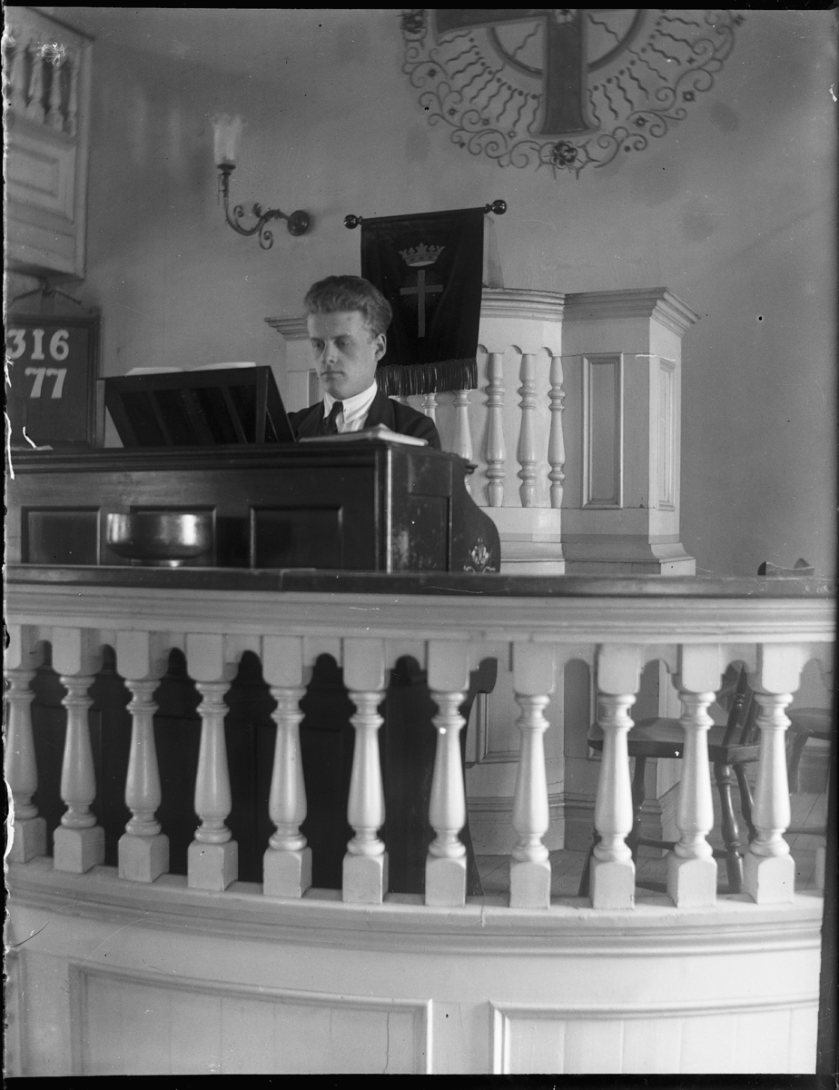 Haga Nygata 25: Lutherska Missionskapellet. Sven Gudmundsson spelar på orgeln.