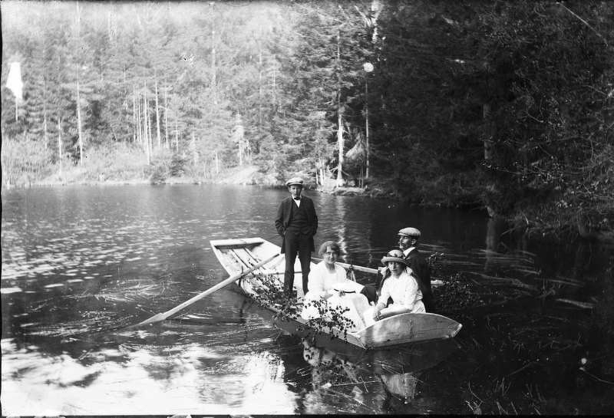 Fyra personer i en eka. Troligtvis i trakten kring Vänersborg.