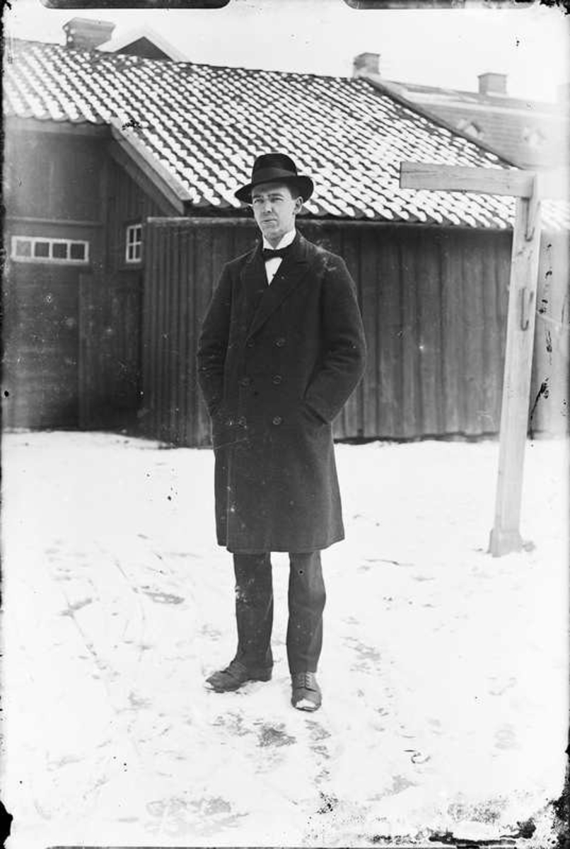 Man framför en ladugård.