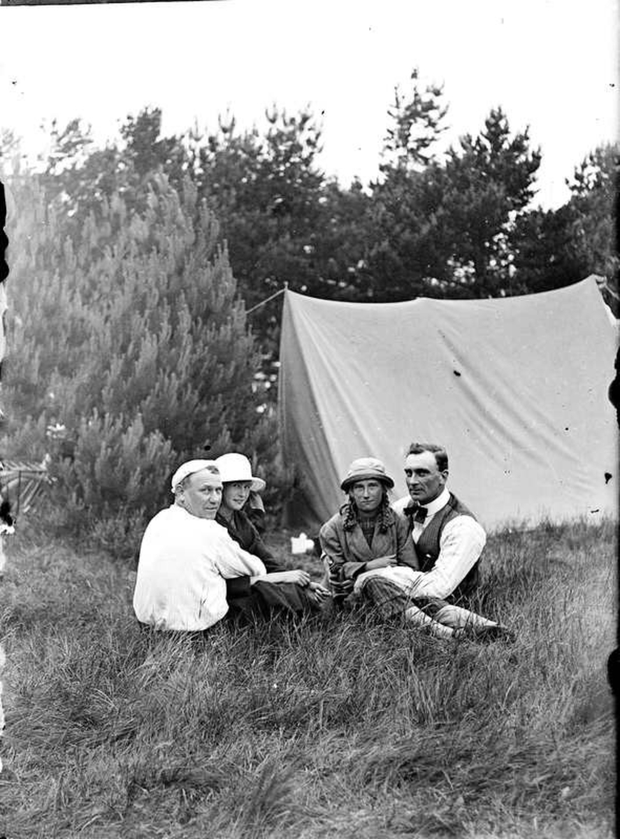 Två par vid ett tält.