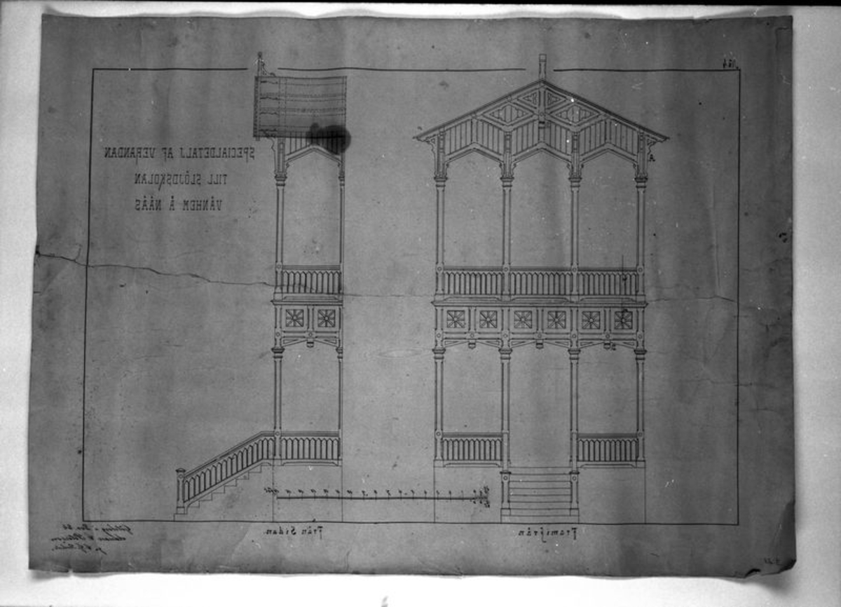 Specialdetalj av verandan till slöjdskolan Vänhem på Nääs