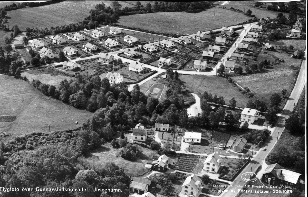 "Flygfoto över Gunnarshillsområdet. Ulricehamn"