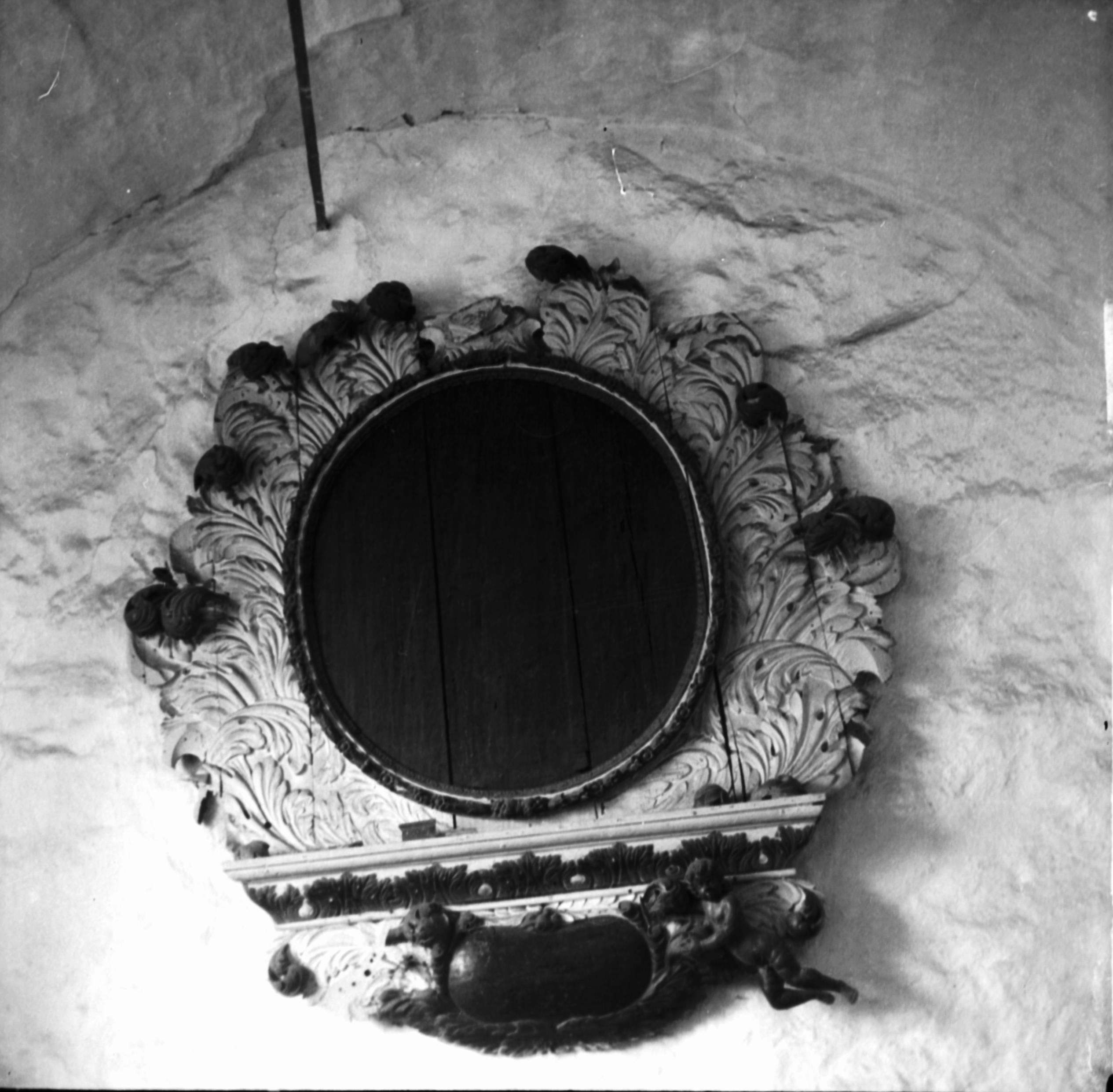 Series Pastorum av trä. Ovalformad, rikt utsmyckad.