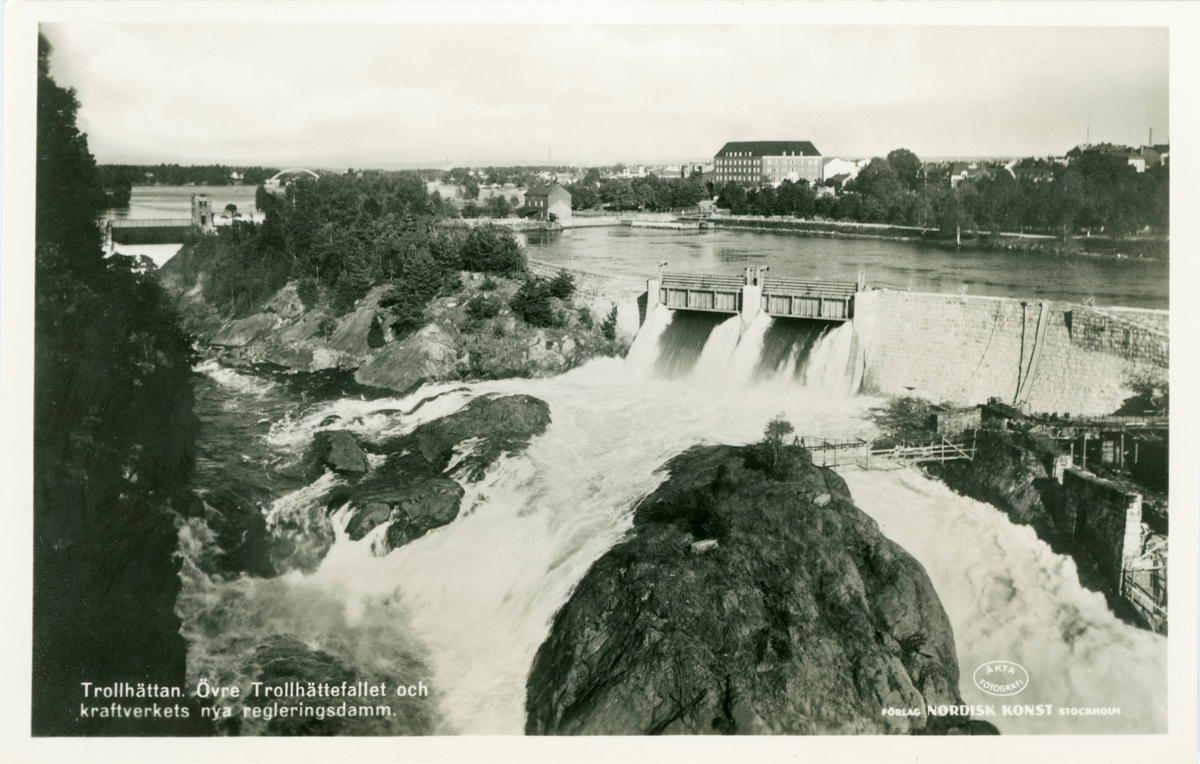 Trollhättan. Övre Trollhättefallet och kraftverkets nya regleringsdamm