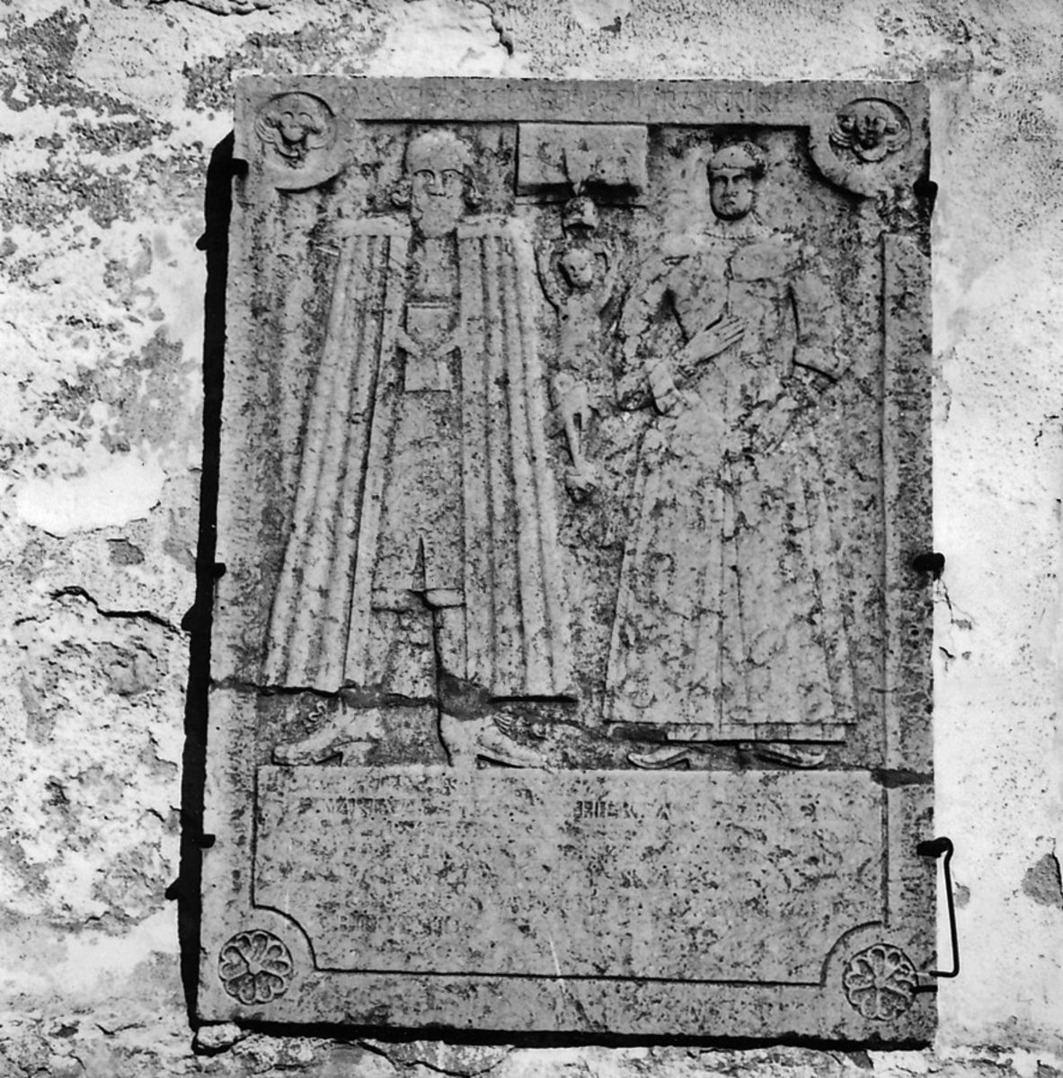 Stora Mellby, kyrkan. Gravsten i kyrkomuren