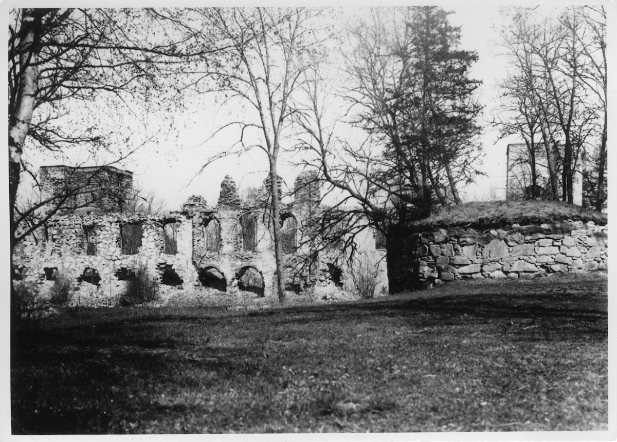 Gräfsnäs. Slottsruinen med ett av försvarstornen i förgrunden.