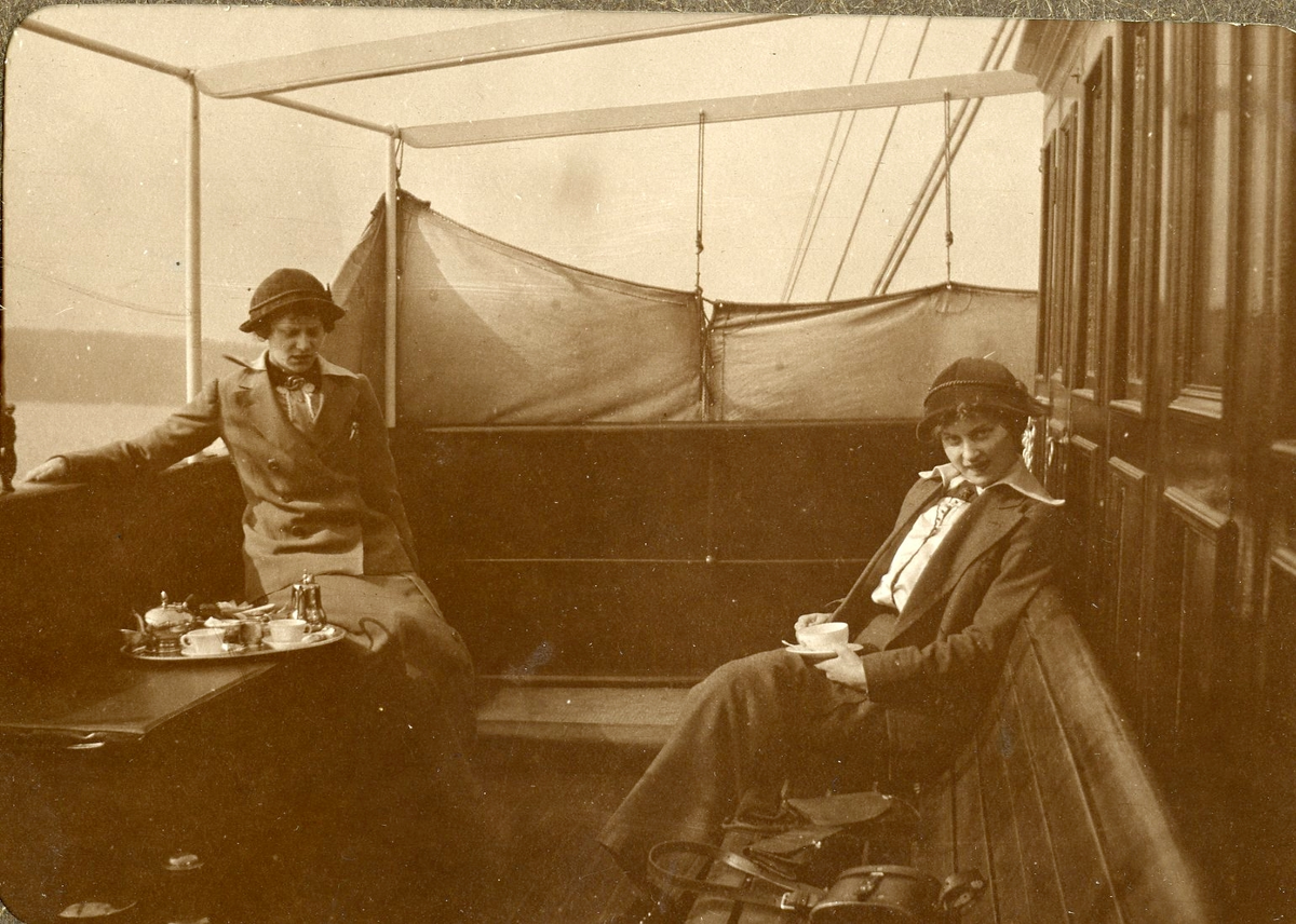 Titel: Två oidentifierade damer ombord på passagerarfartyg.