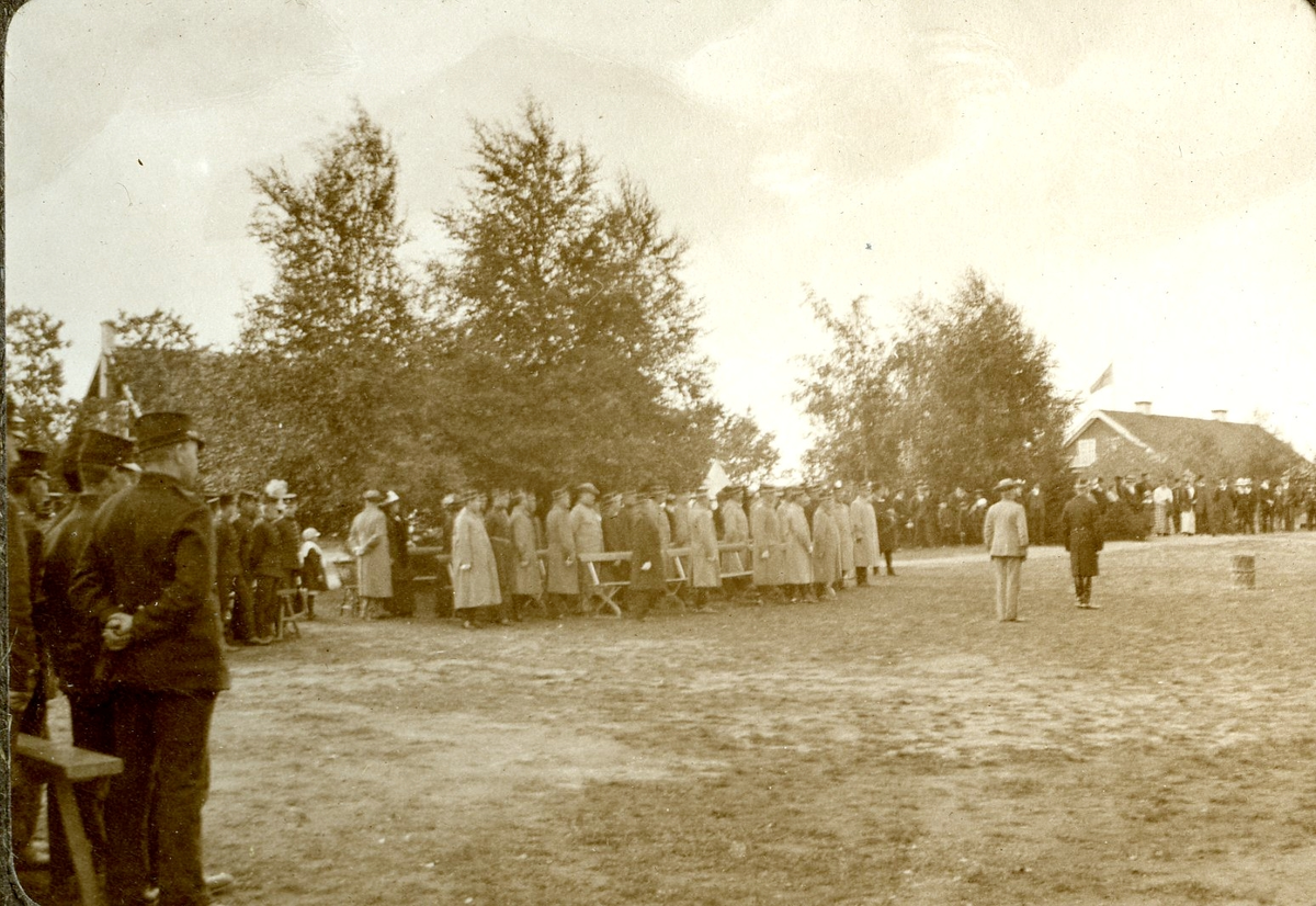 Titel: Sannolikt Kalmar regementes officerskår vid ceremoni.