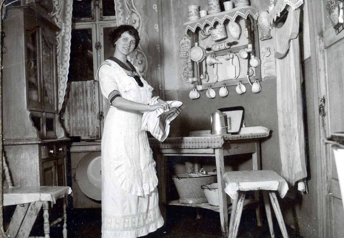 Titel: Dam i ett kök.