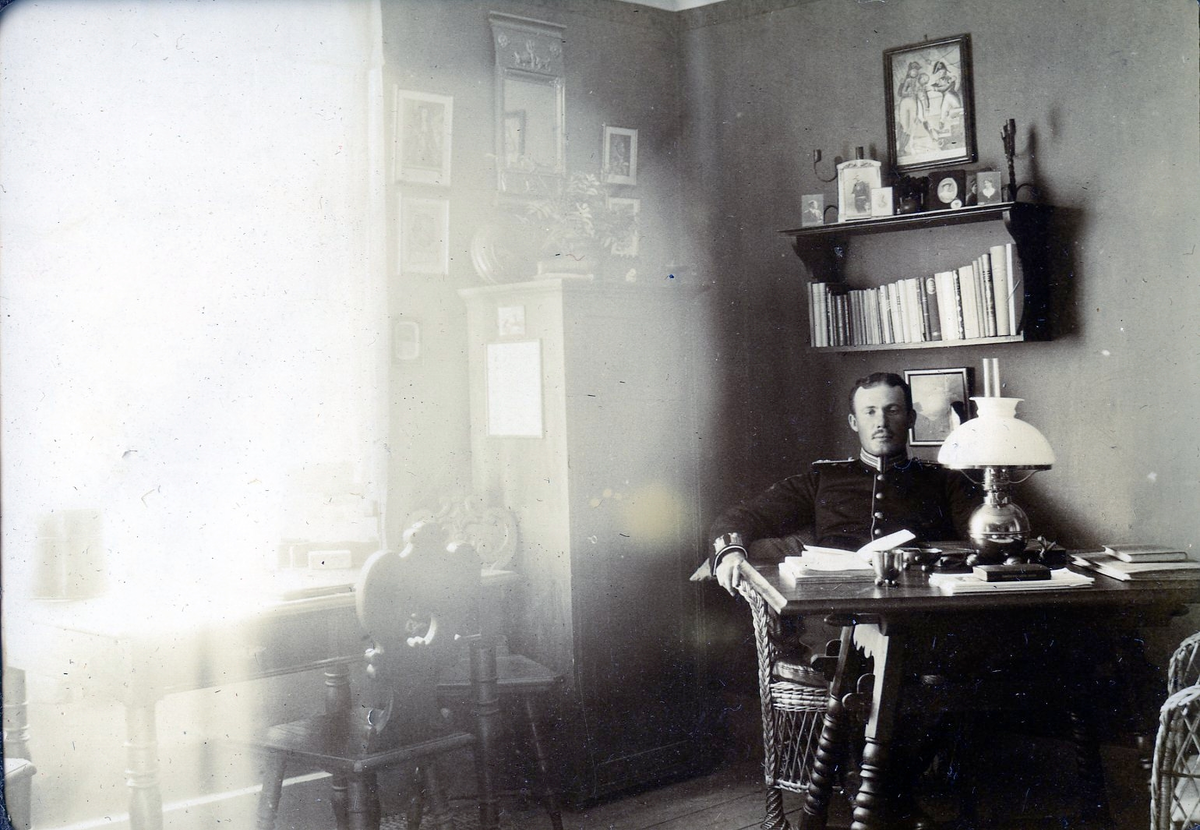 Titel: Officersrum på Hultsfreds slätt. Kalmar regemente. Oidentifierad löjtnant.