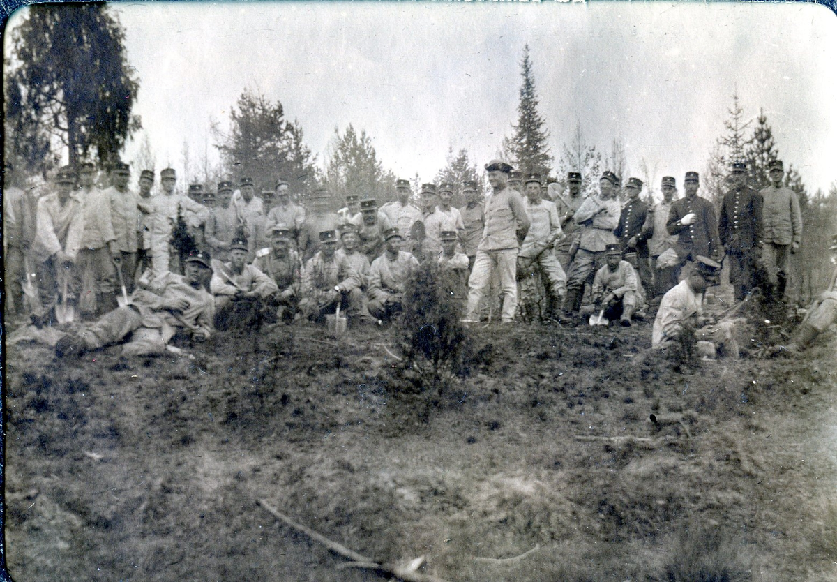 Titel: Trupp i "grötmundering" med fältspadar. Kalmar regemente.