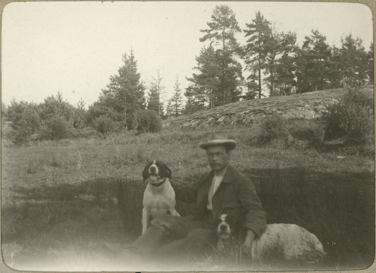 Man med två hundar