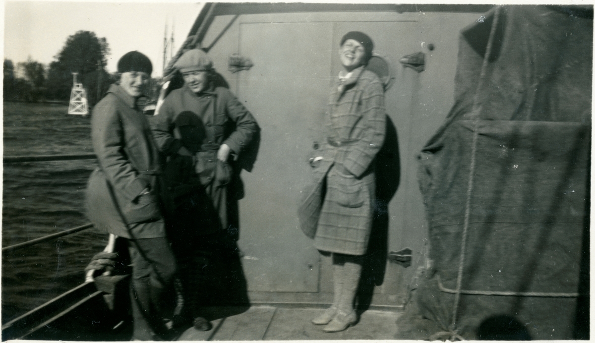 "På cykeltur med bil, båt och tåg". Sannolikt elever vid Vänersborgs högre läroverk för kvinnlig ungdom