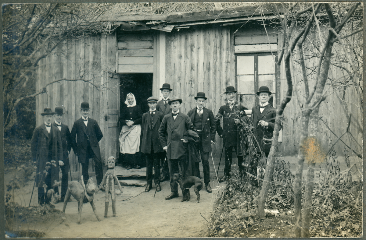 Vänersborgs vandrareförening. Gruppbild framför byggnad