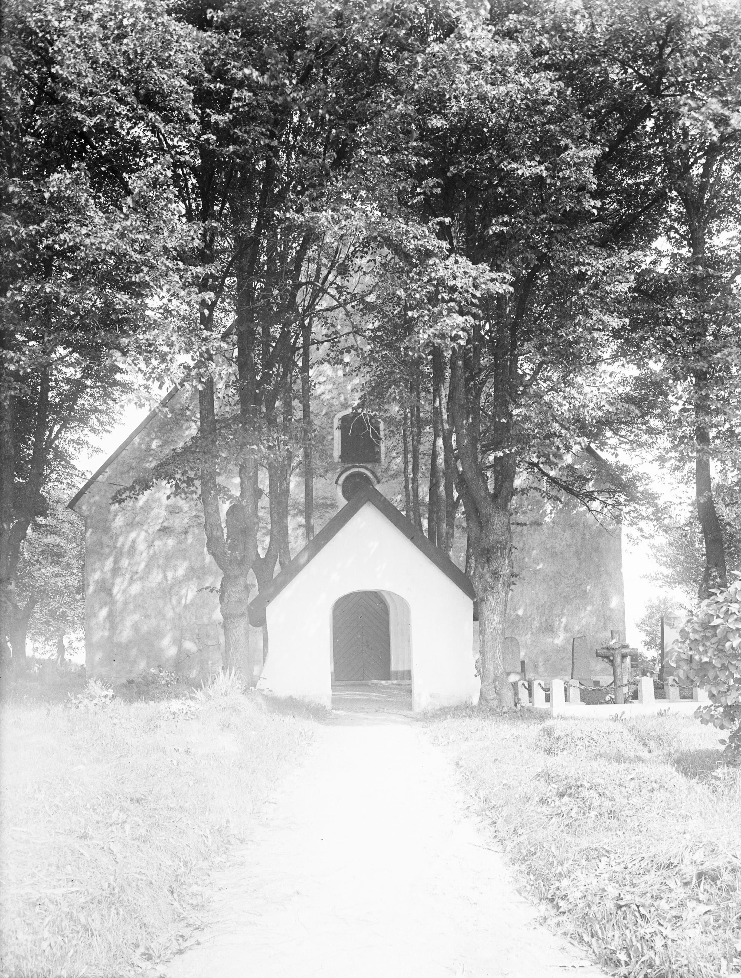 Beskrivning: Kyrkan mot väster med stigluckan.