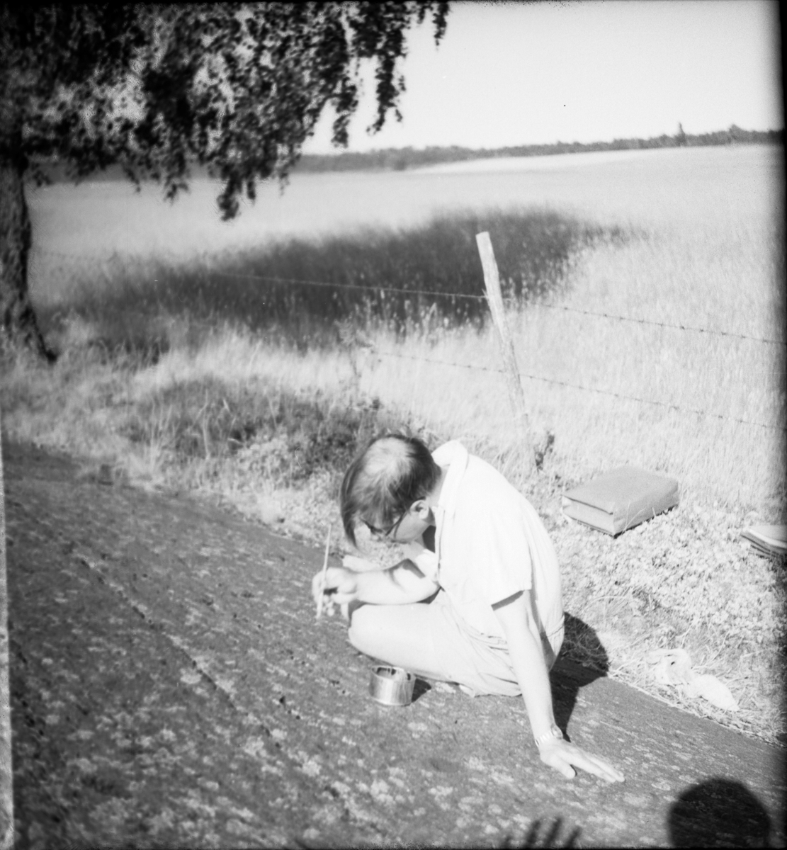 Imålning av hällristningar.Landsantikvarie Hallbäck Tisselskog
