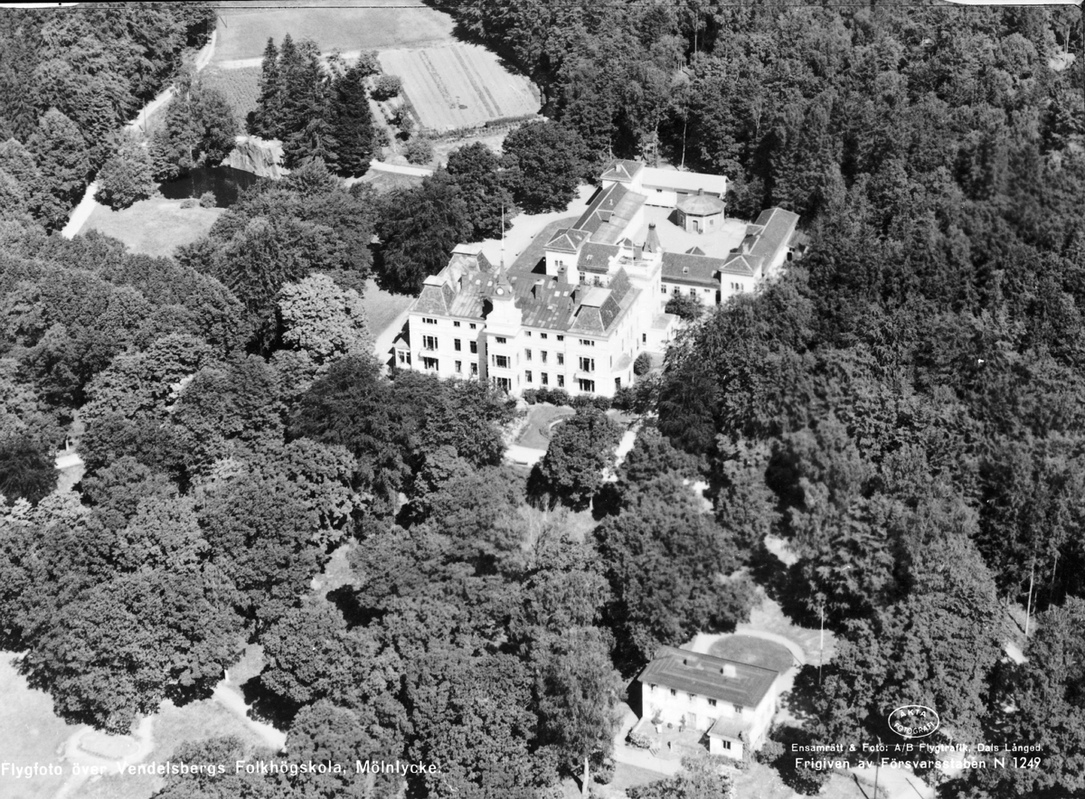 Flygfoto över Vendelsbergs Folkhögskola. Mölnlycke