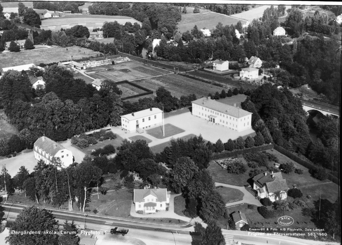 Text på bild:" Dergårdens Skola Lerum Flygfoto"