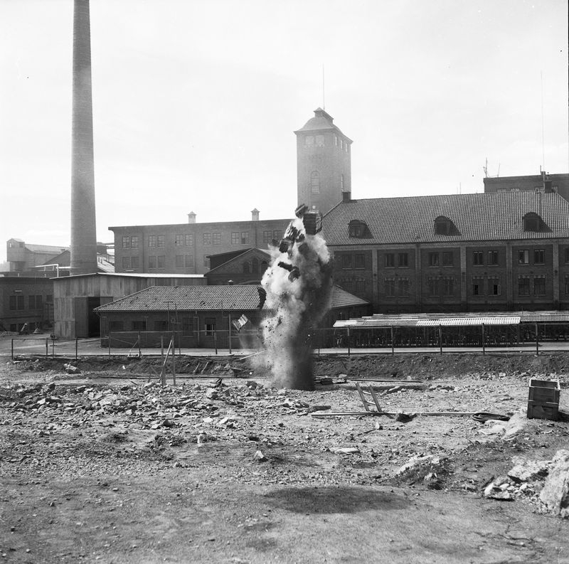 Wargöns AB. Byggnation av PM 5 1959-60. Foto och påförd text av dåvarande ritkontorschefen Ragnar Söderberg.