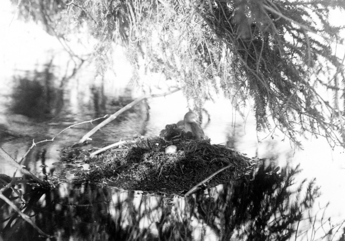 Podiceps minor, smådopping på boet.(ägg skymtar) Karnavävaresjön,