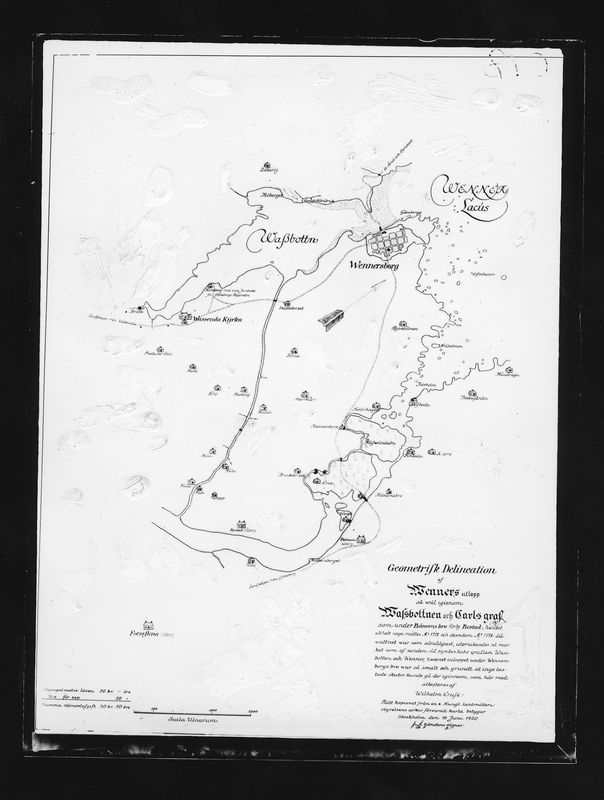 Karta över Wennerns utlopp såväl igenom Wassbotten och Carls grav av Wilhelm Cruse