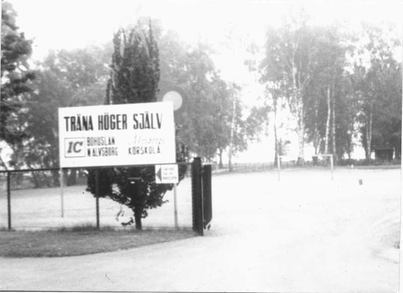 Älvsborgs körskola, träna höger själv. Ett särskilt område hade körskolan i ordningställt för att träna köra till höger. Sponsrades av bensinbolaget IC.