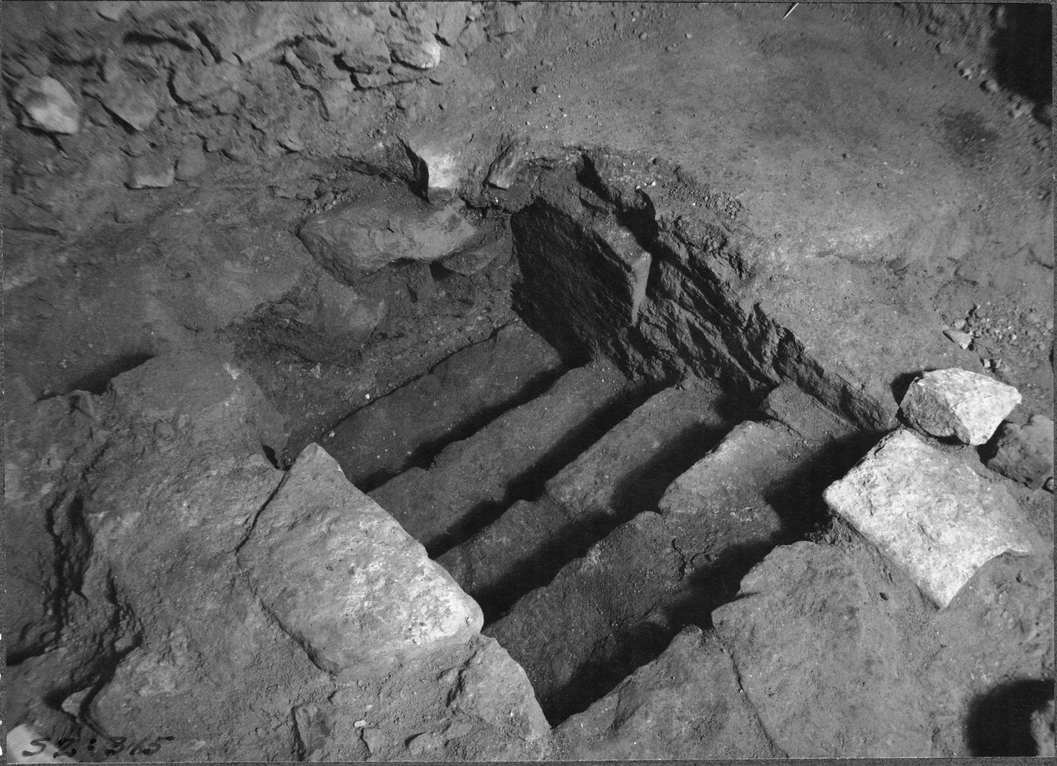 Grävning inom kyrkan, schakt X, norra trappan från nordväst.