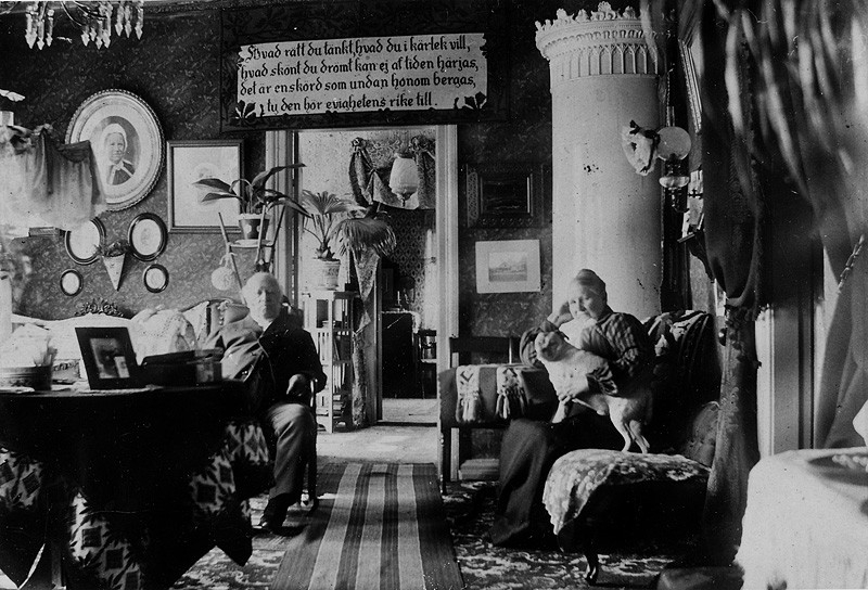 Västra Tunhem. Vargön Gunnarstorp. Borgmästare Gustaf Sandberg och hans syster Ida samt hunden Tim.