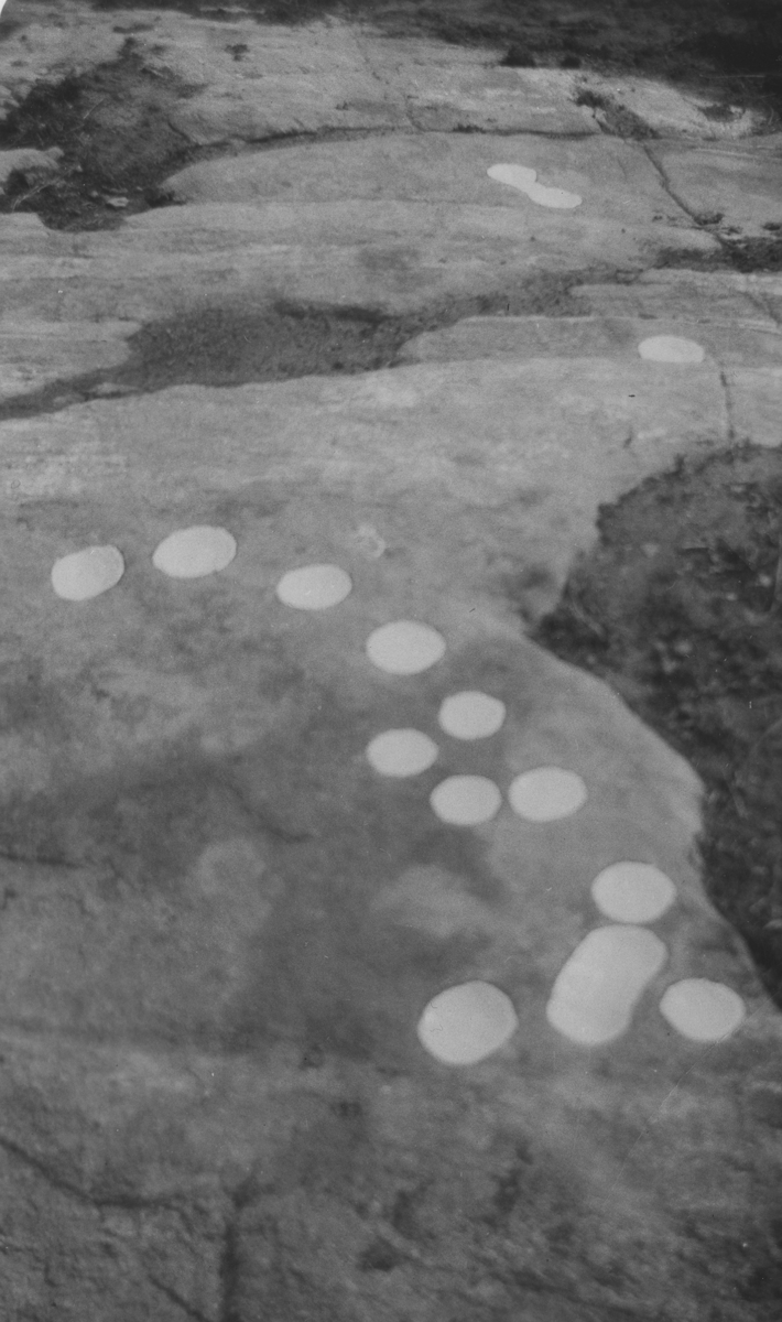 Trollhättan, Gärdhem, Offerhäll med 12 skålgropar. Vid Baggården, ca 400 m. söder om Gärdhems kyrka.